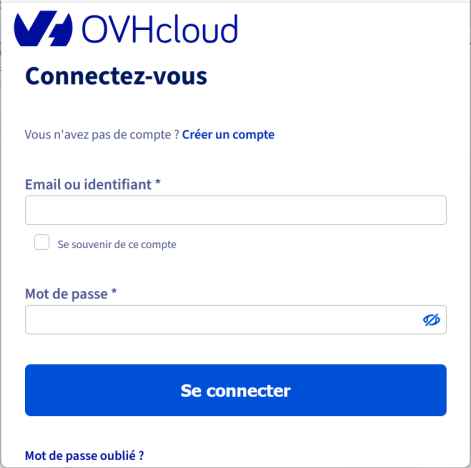 Pour cela il faut se rendre sur la page de connexion administrateur de l’hébergeur OVH à cette adresse : https://manager.eu.ovhcloud.com/